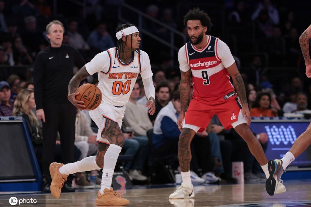 尼克斯队首发:乔丹-克拉克森、盖尔雄-亚布塞莱、迈尔斯-麦克布莱德、帕科姆-达迪耶、马尔科姆-布罗格登